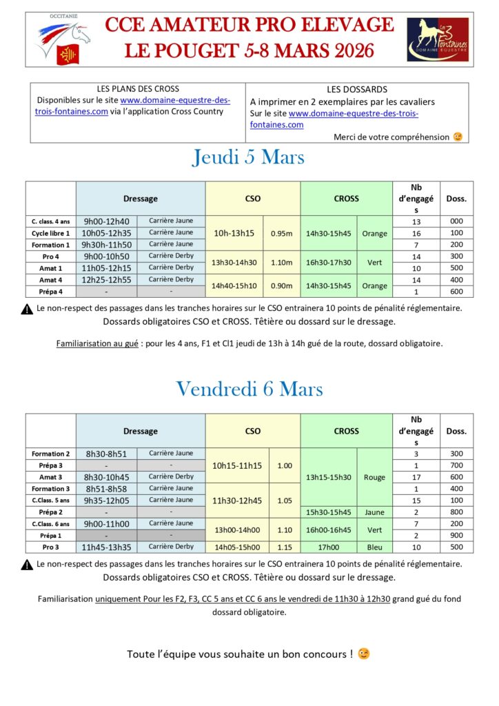 • Grand régional 1ère étape – CCE amat/pro/jeunes chevaux